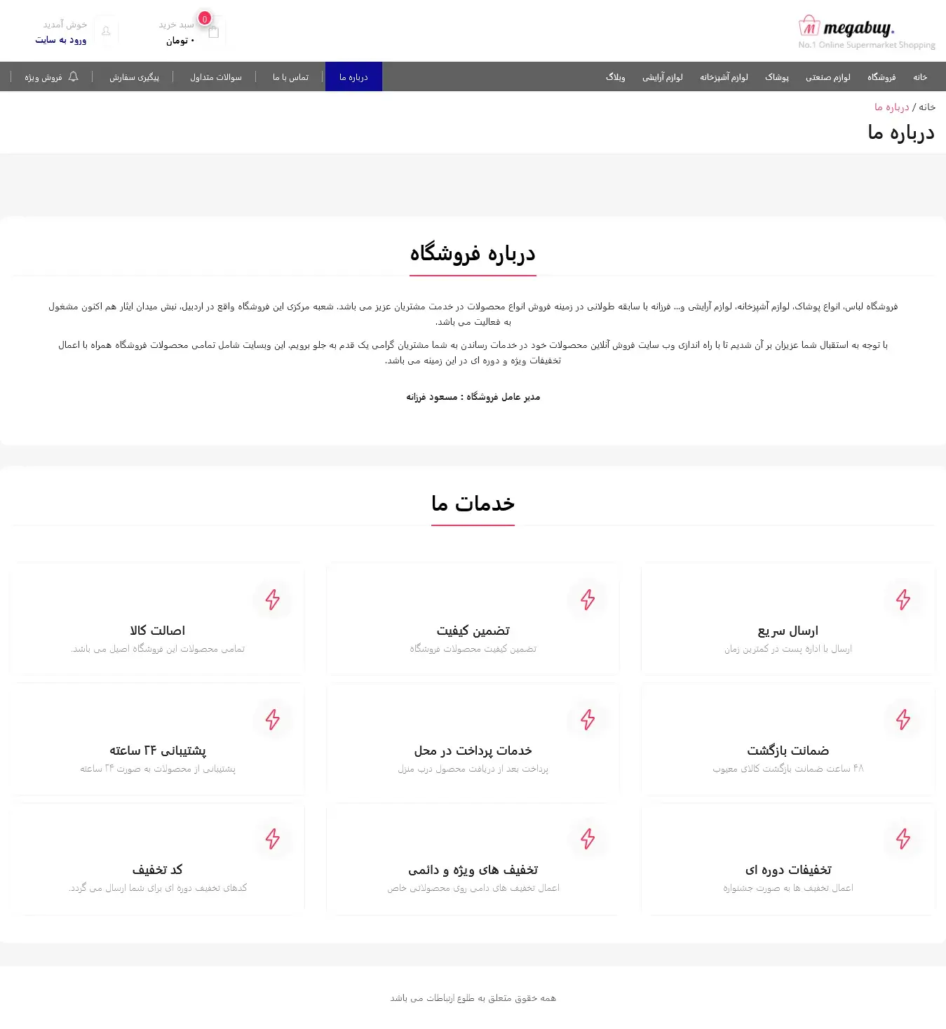 فروشگاه اینترنتی سیب سین یک فروشگاه آنلاین در زمینه فروش لوازم صنعتی و پوشاک می باشد. این وب سایت به صورت اختصاصی توسط توسعه دهندگان شهر اجرا شده است.