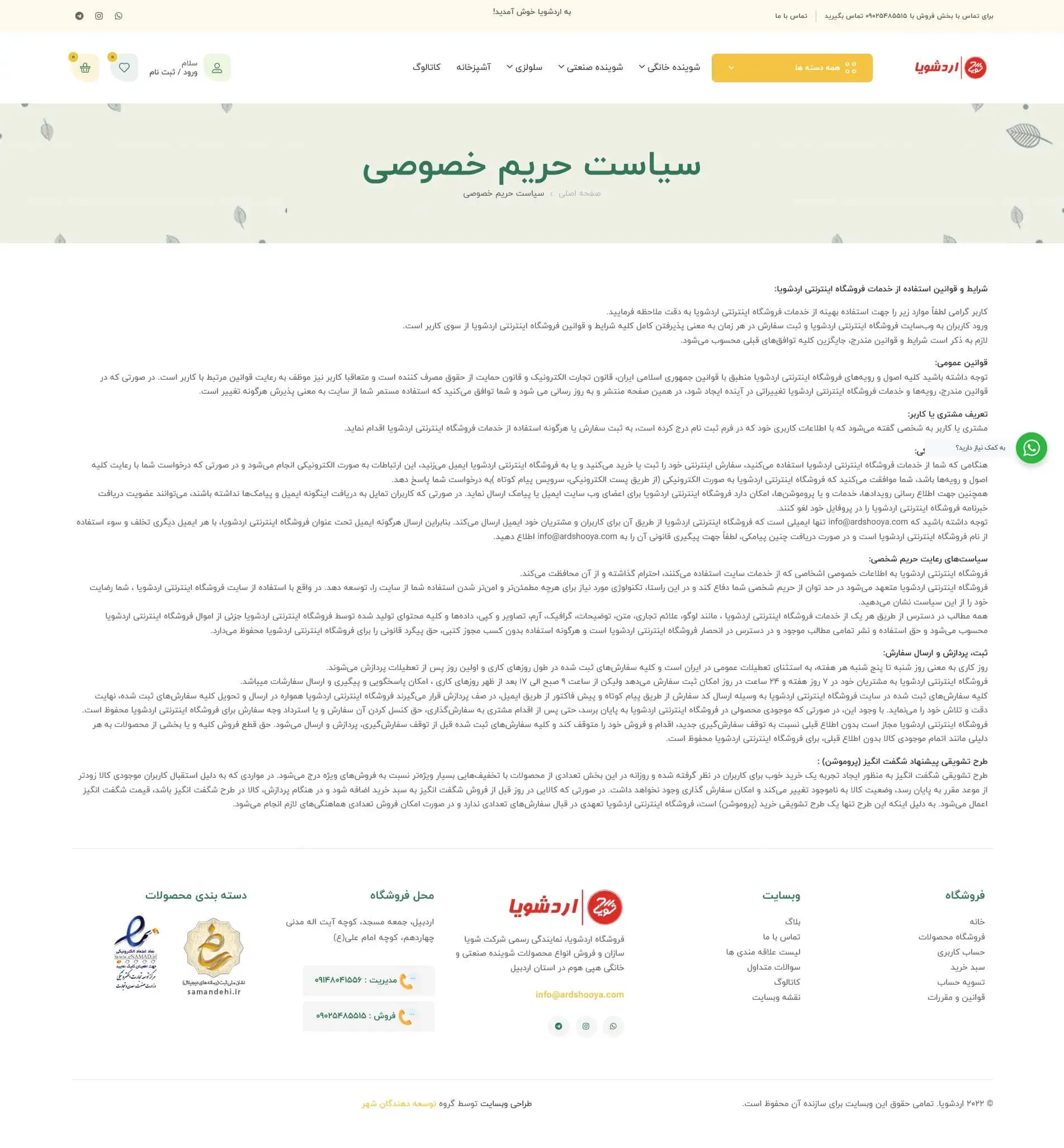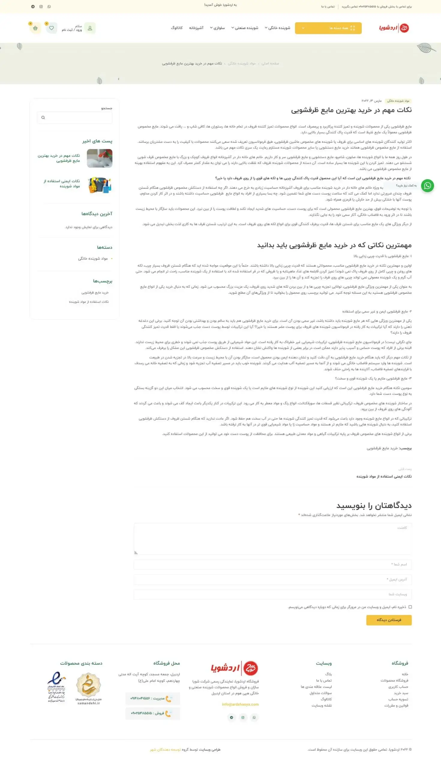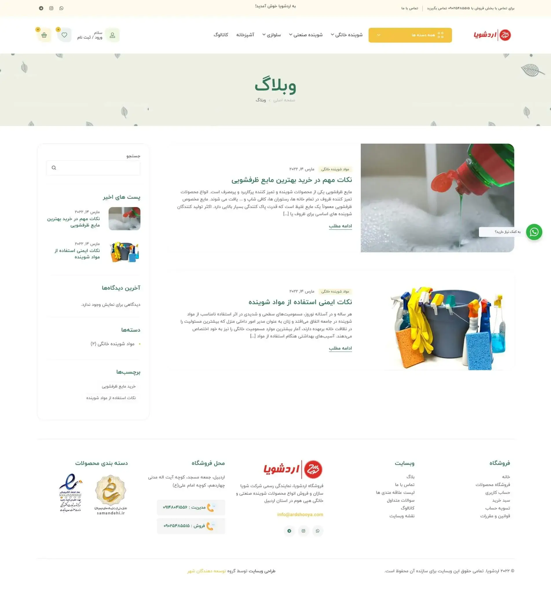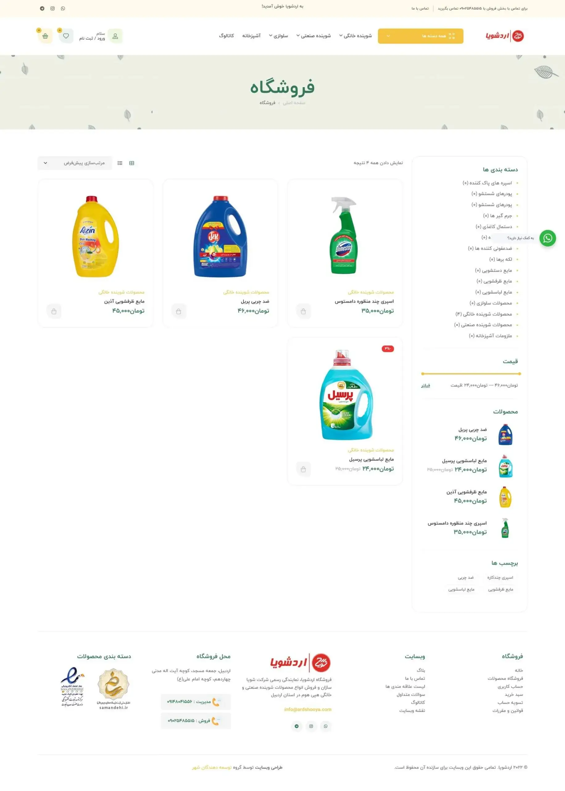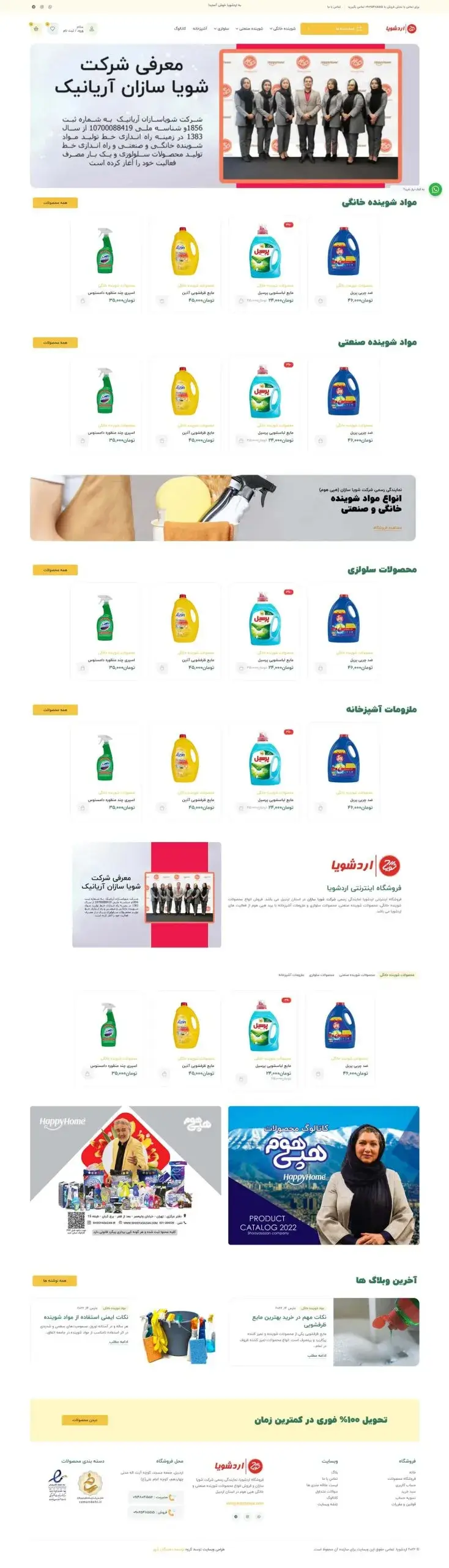 سایت اردشویا یک فروشگاه آنلاین در فروش انواع مواد شوینده خانگی و صنعتی و محصولات سلولزی می باشد که توسط گروه توسعه دهندگان شهر طراحی شده است.