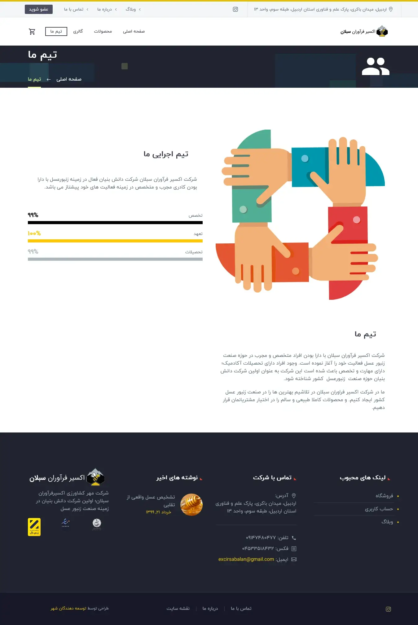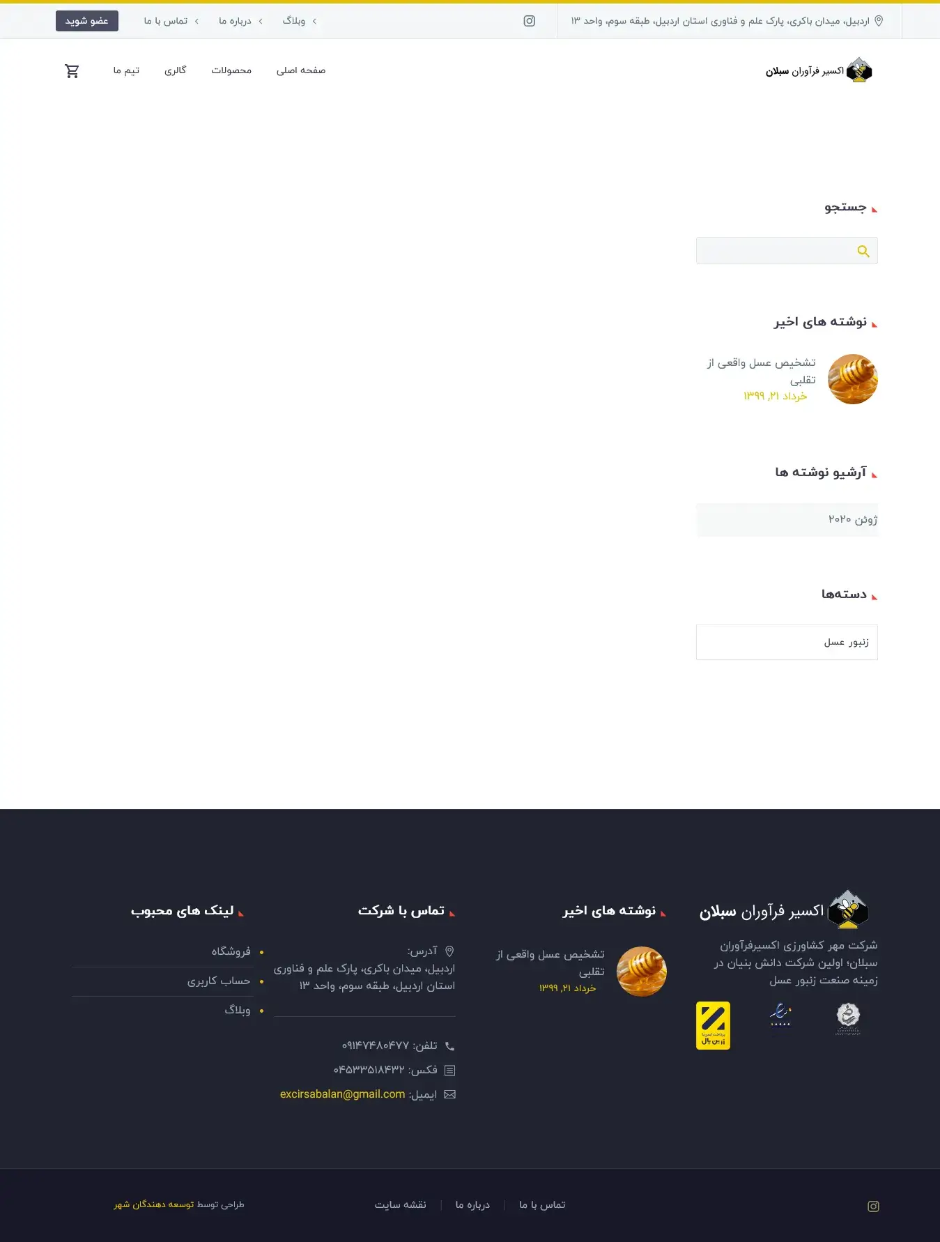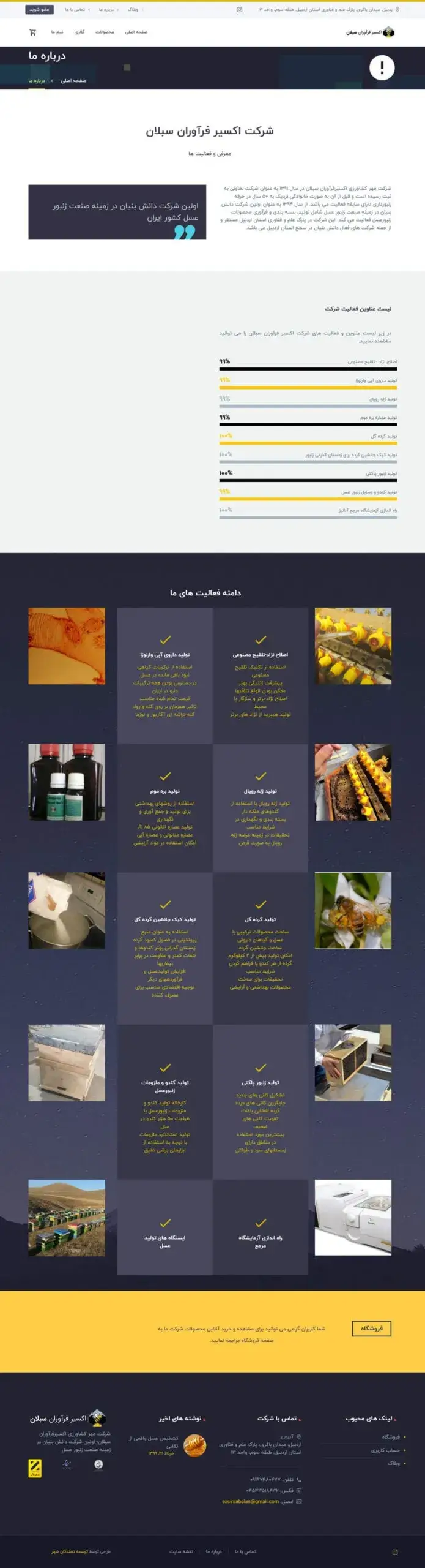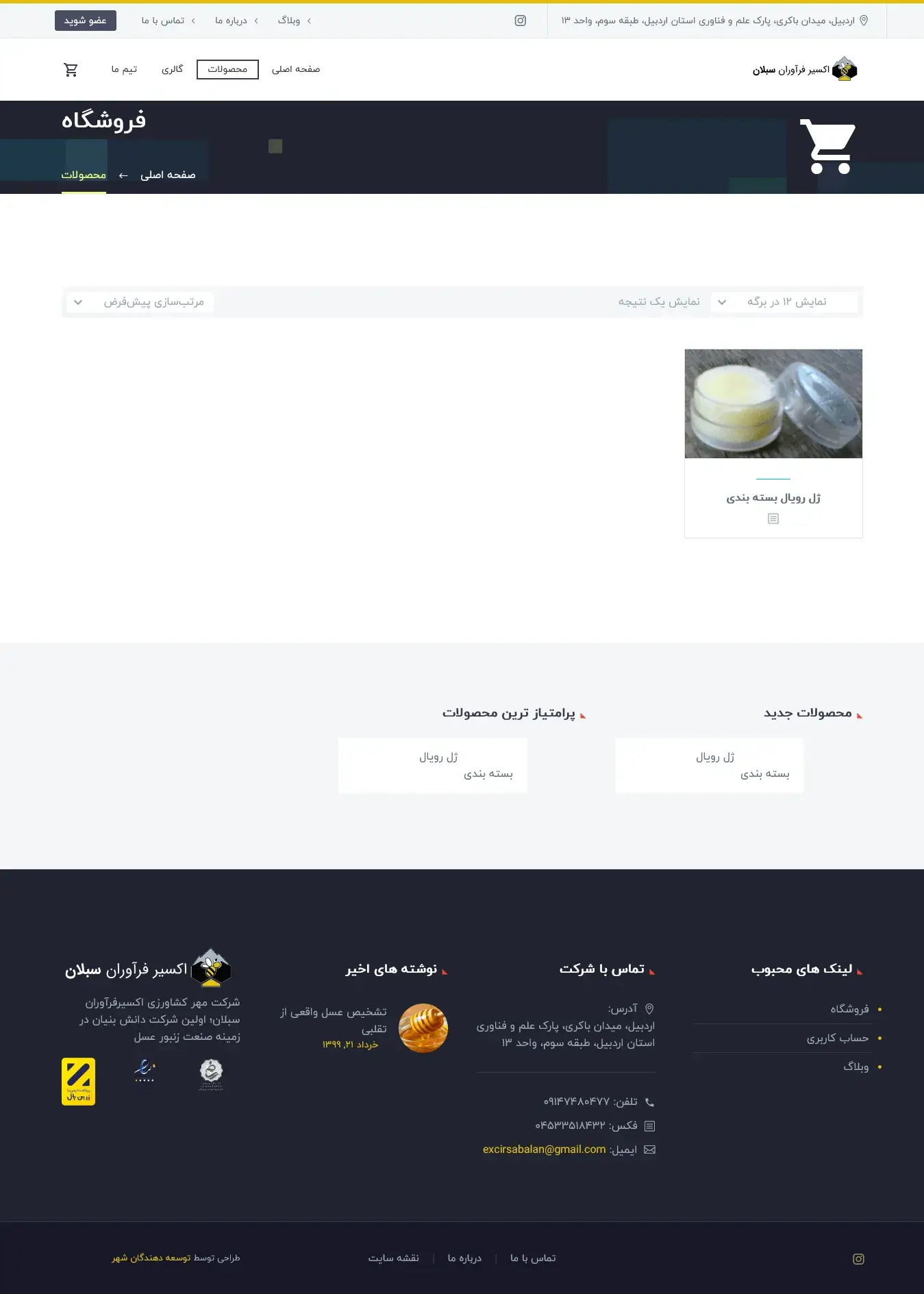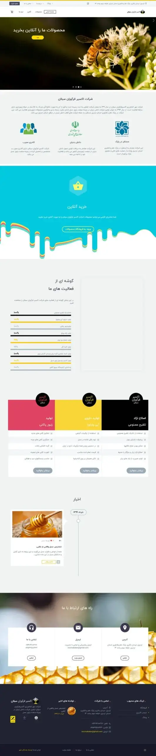 این پروژه یک فروشگاه آنلاین فروش محصولات عسل می باشد. این وب سایت به صورت اختصاصی برای شرکت اکسیر فرآوران توسط توسعه دهندگان شهر اجرا شده است.