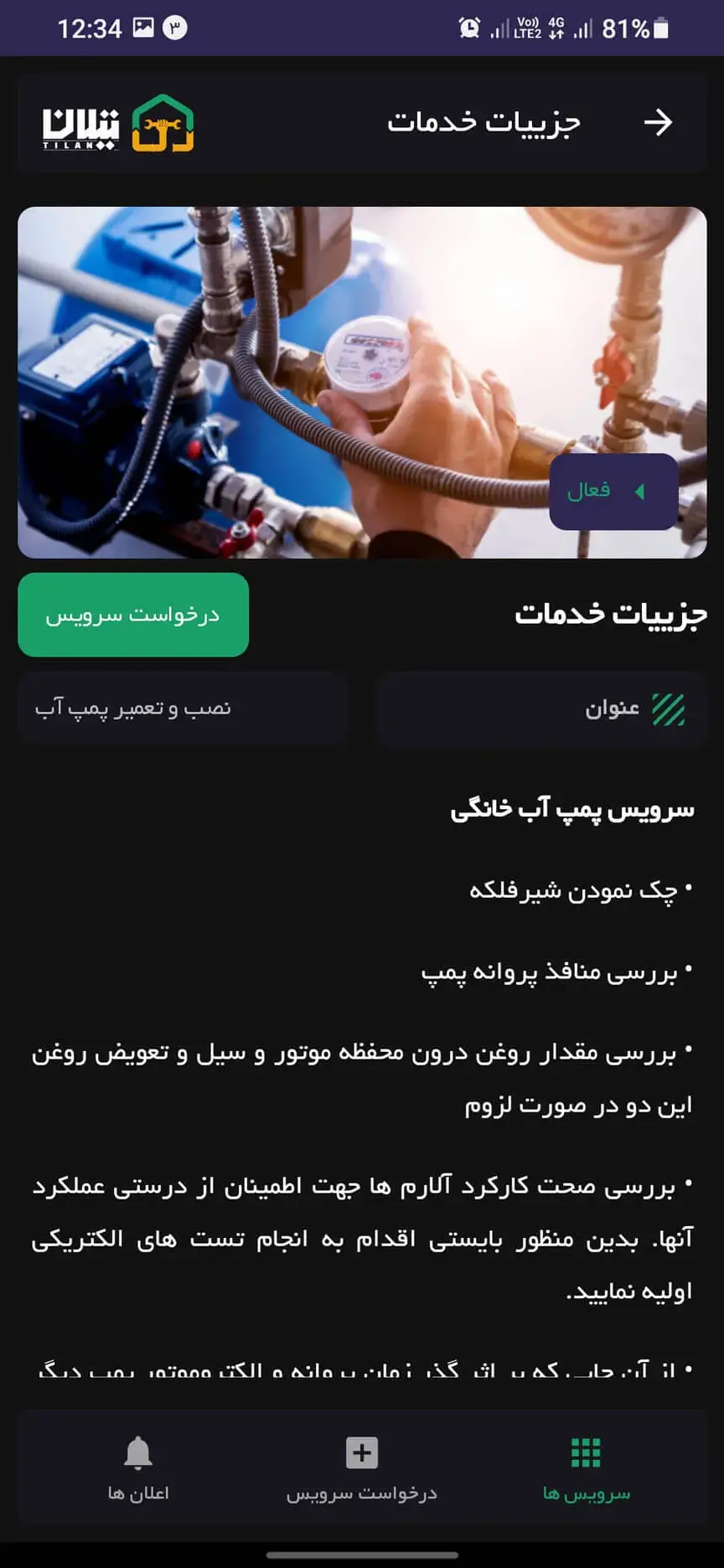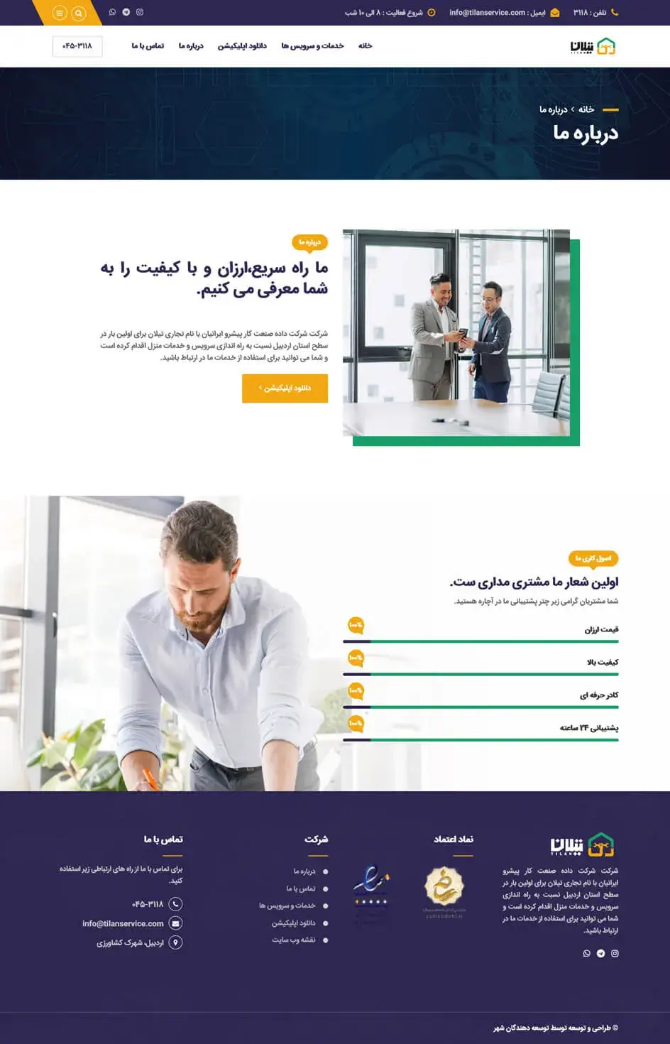 وبسایت و اپلیکیشن تیلان سرویس در حوزه ی خدمات و سرویس ساختمان به صورت اختصاصی برای مجموعه تیلان سرویس توسط توسعه دهندگان شهر طراحی و اجرا گردیده است.