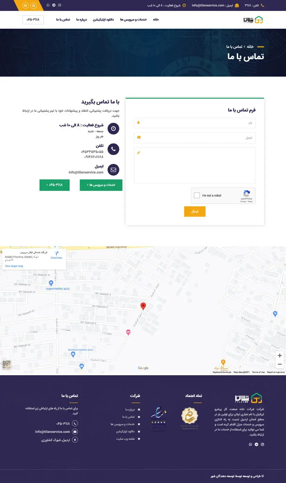 - صفحه تماس با ما فرم تماس و مشخصات تماس
