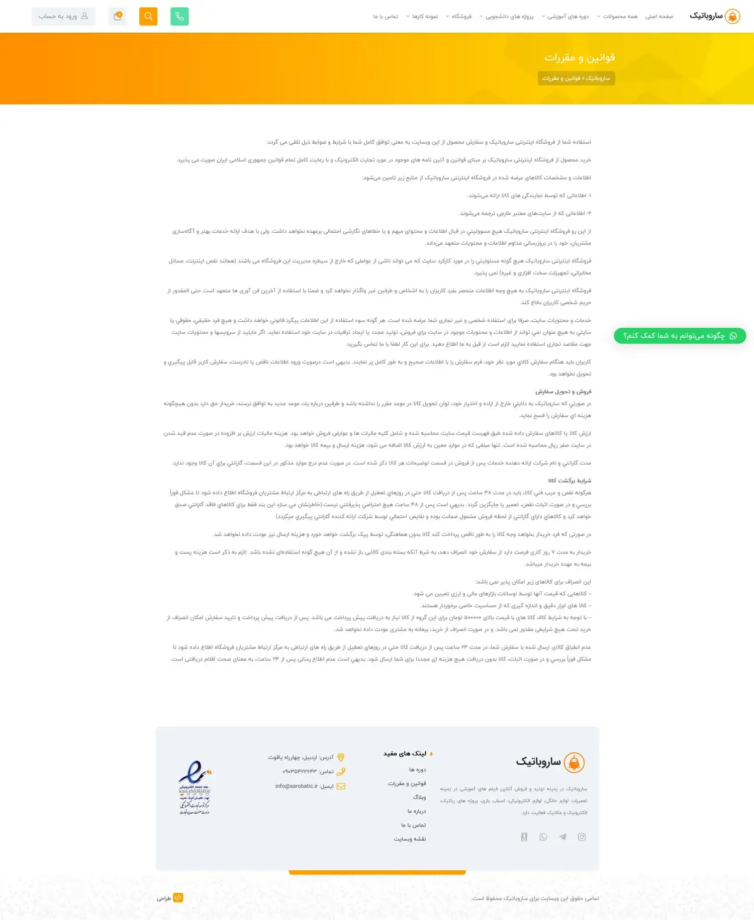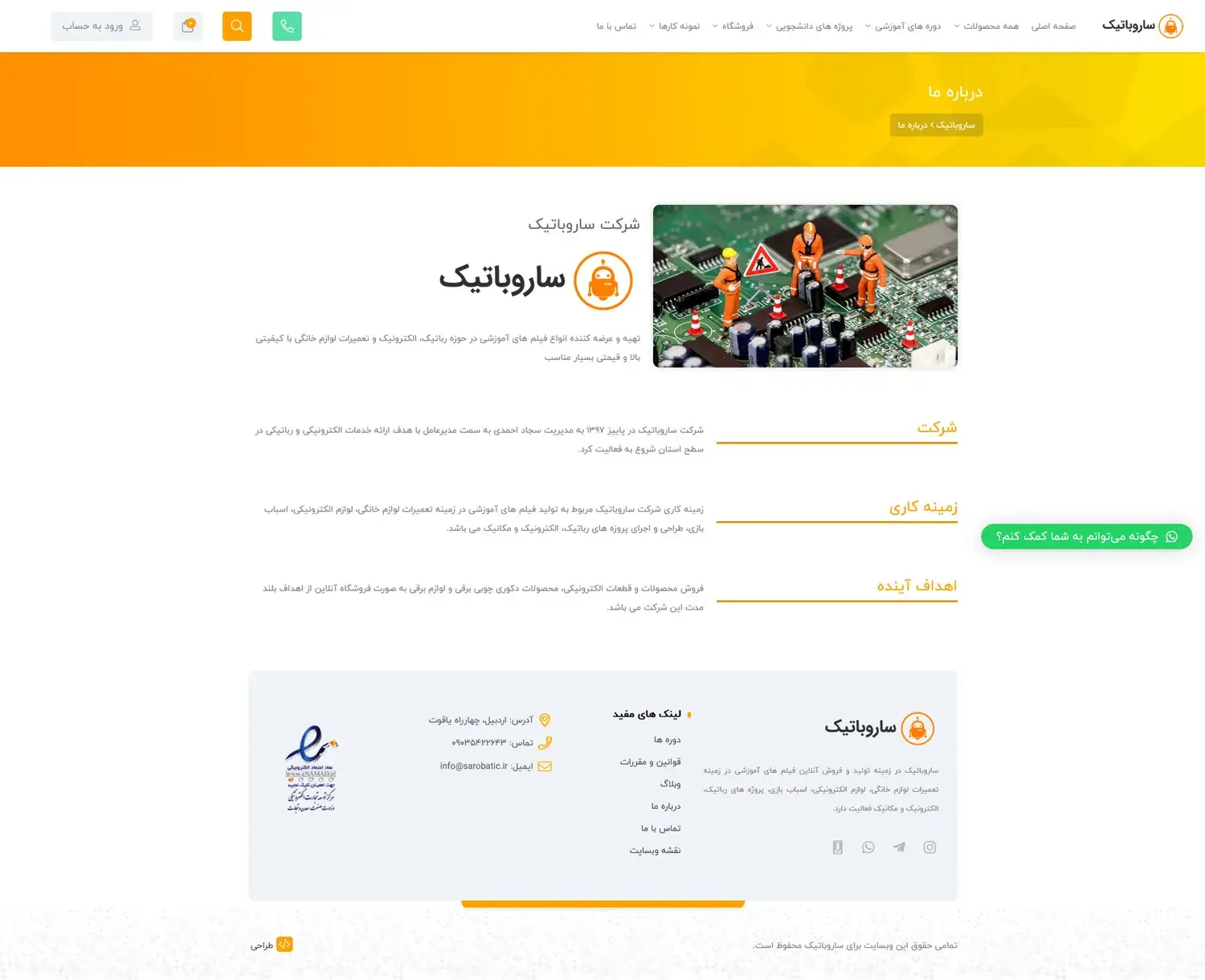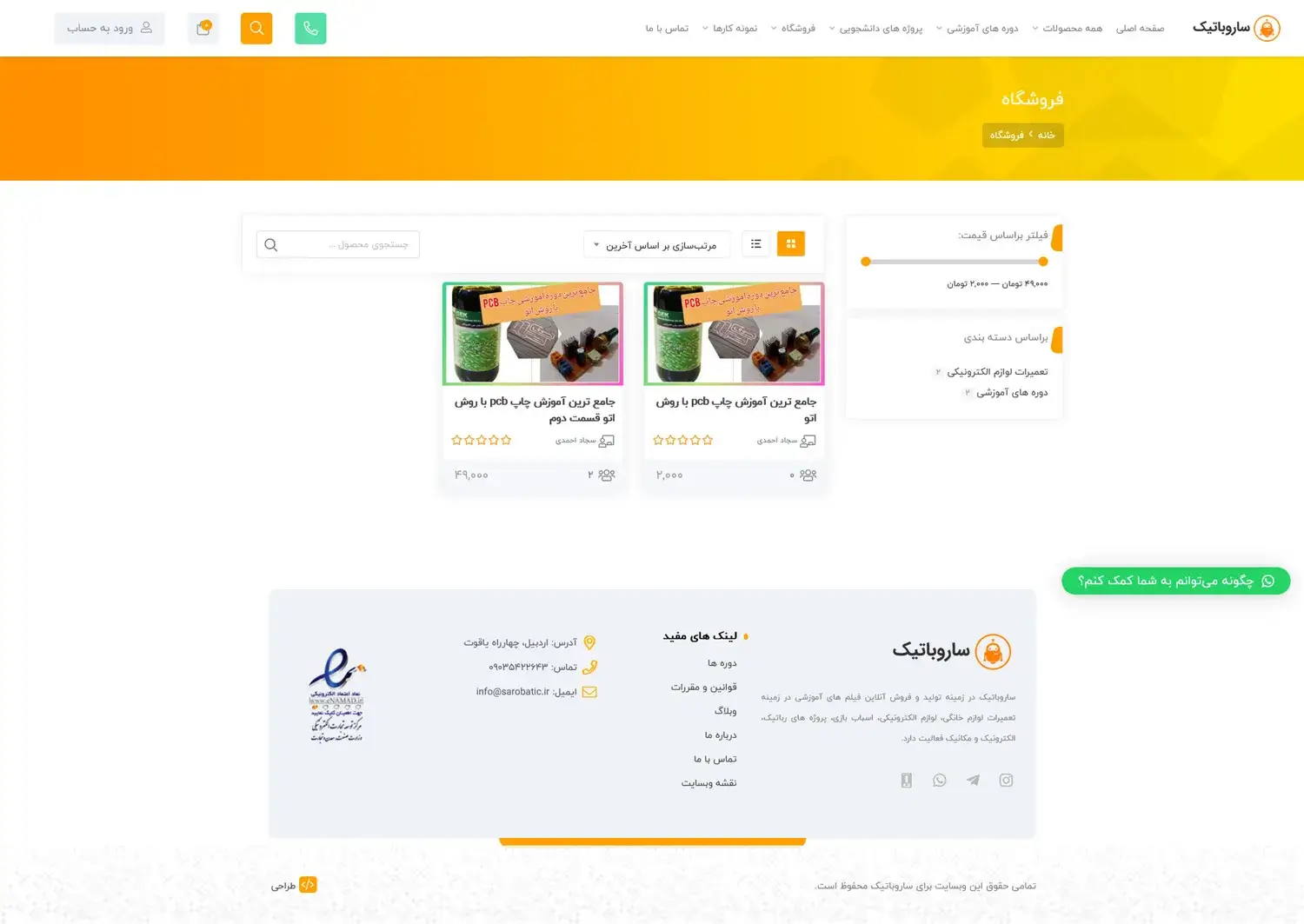 سایت ساروباتیک یک فروشگاه آنلاین در فروش انواع دوره آموزشی الکترونیک و رباتیک می باشد که توسط گروه توسعه دهندگان شهر طراحی شده است.