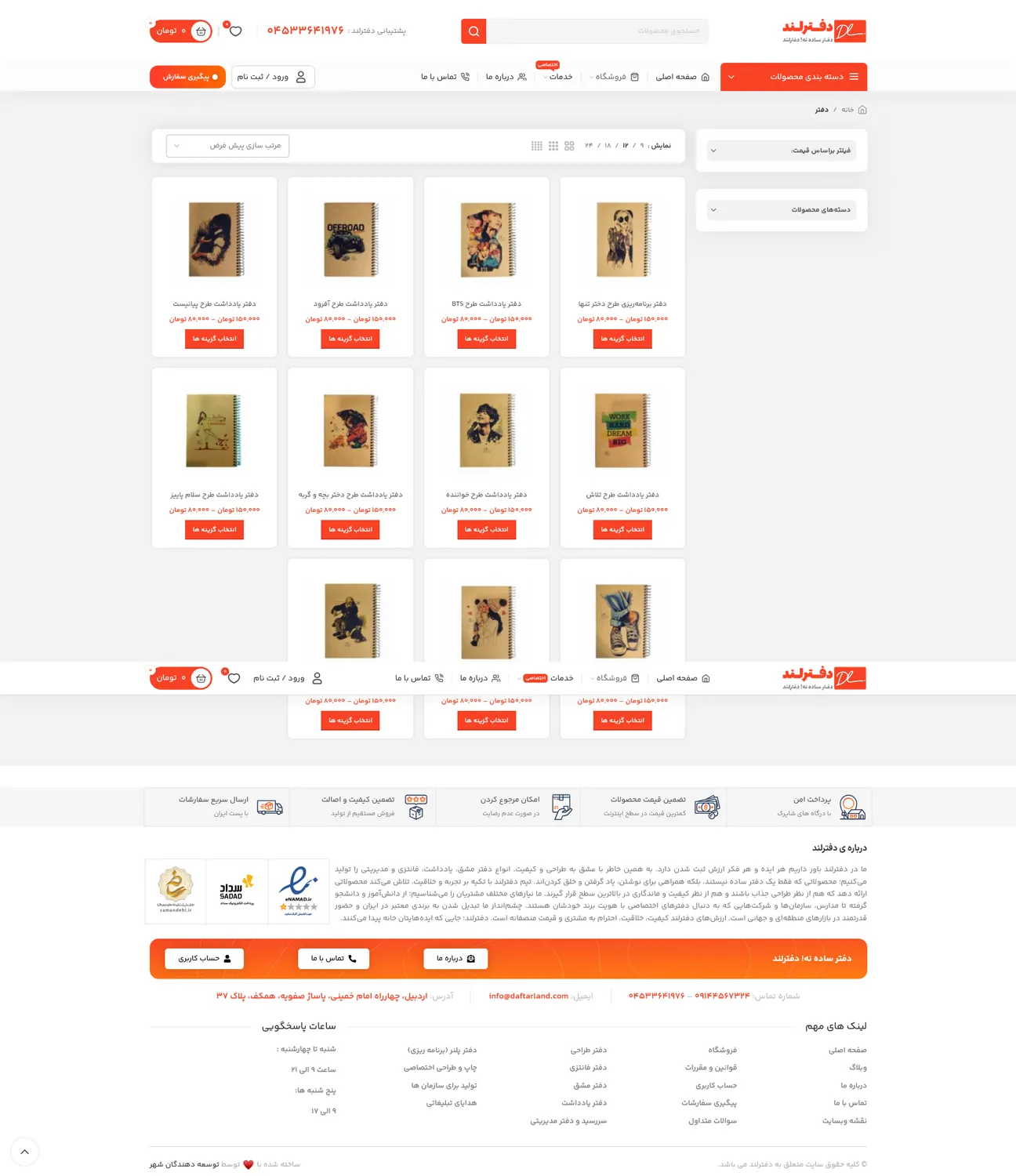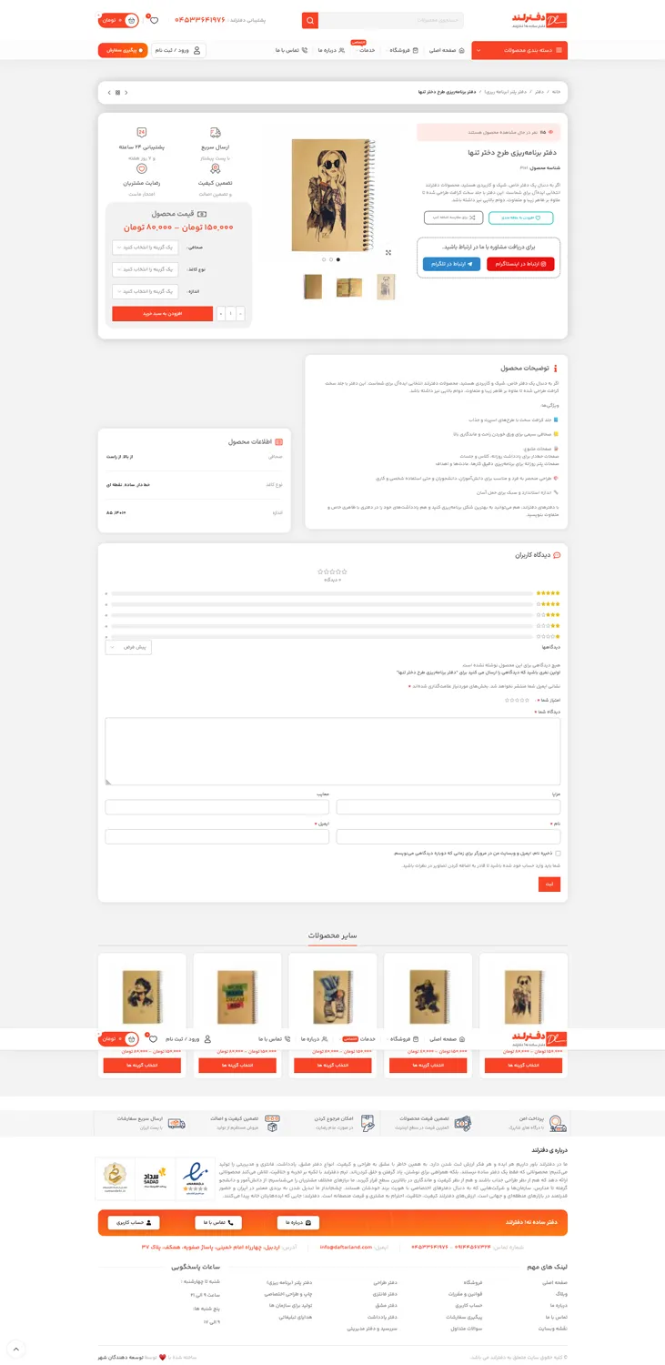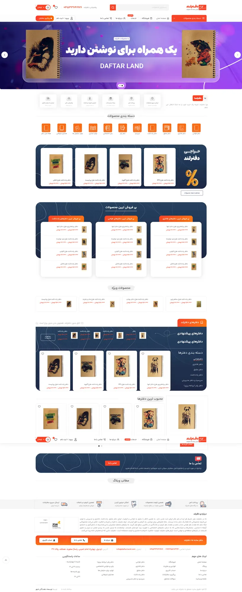 سایت دفترلند یک وبسایت فروش محصولات لوازم التحریر می باشد که توسط گروه توسعه دهندگان شهر طراحی شده است.