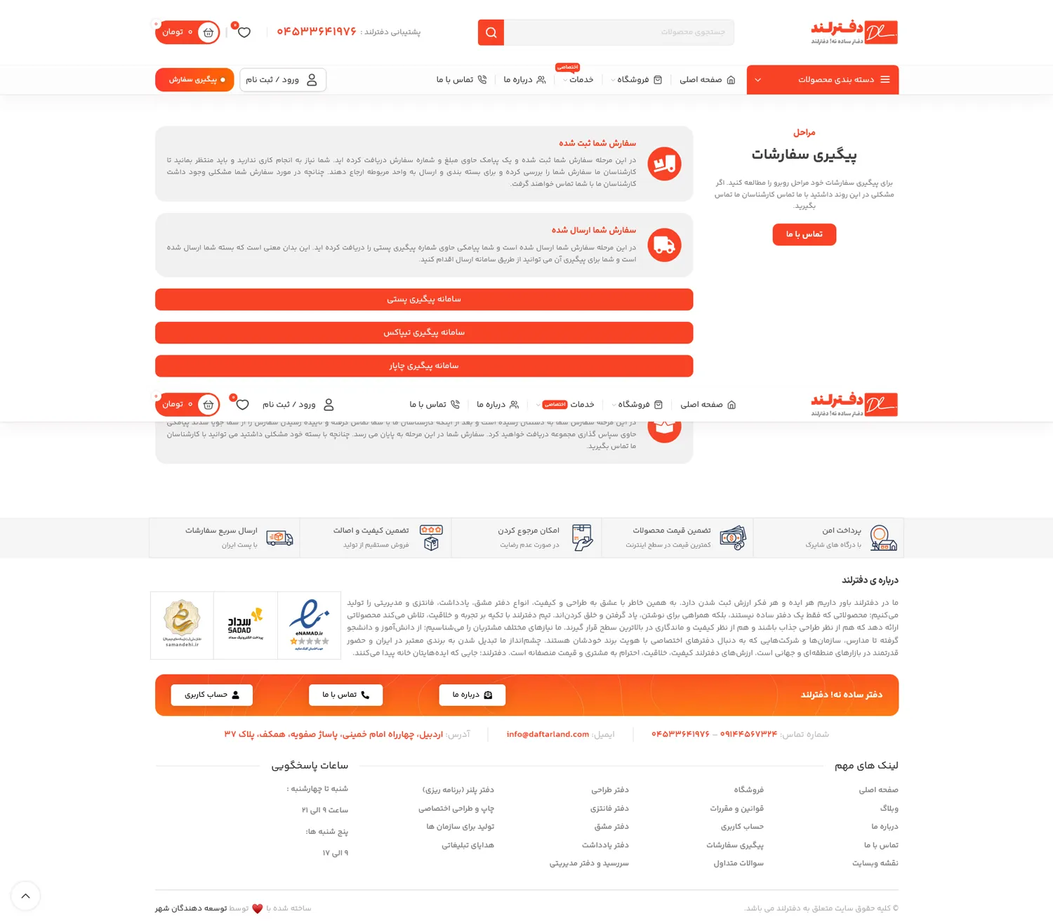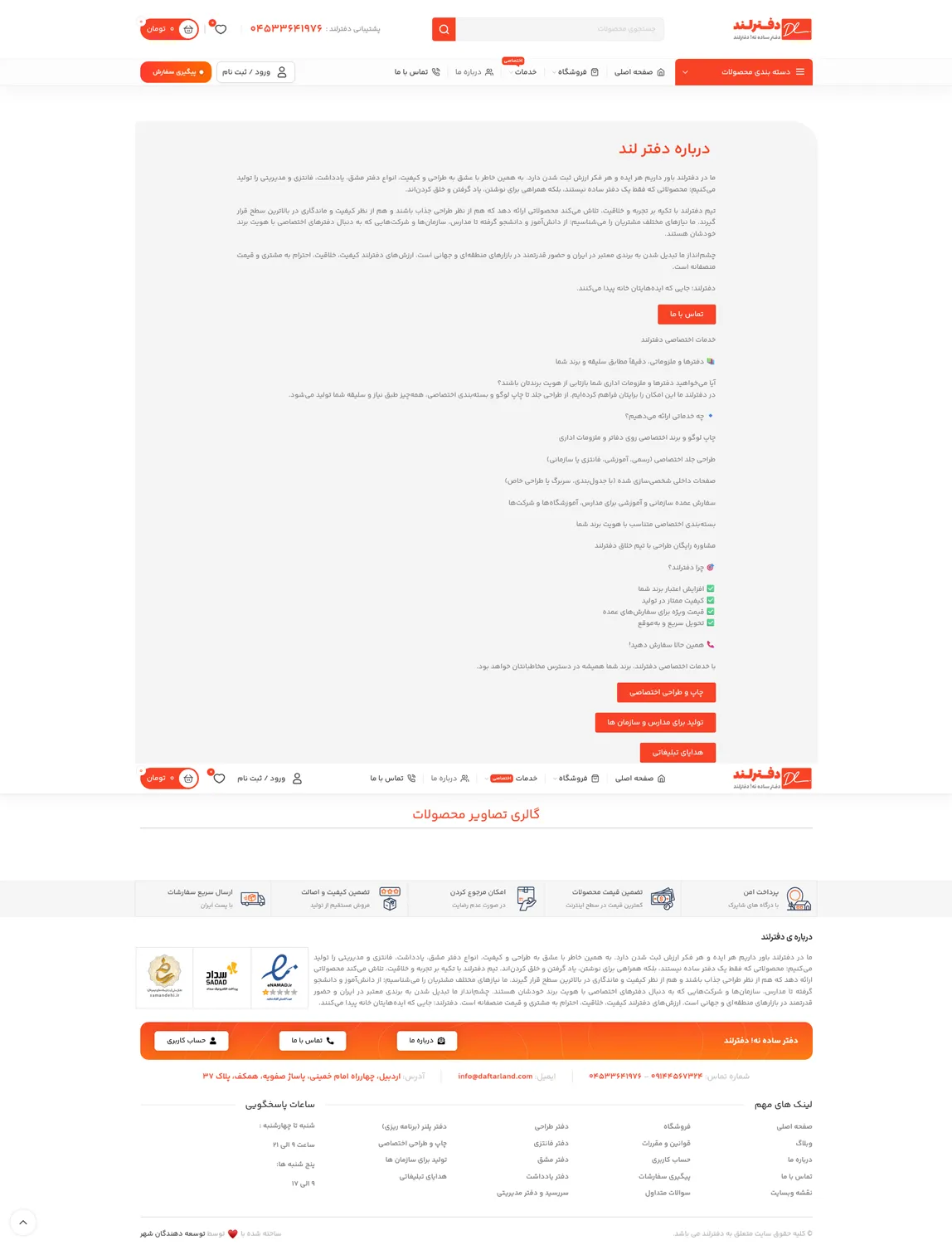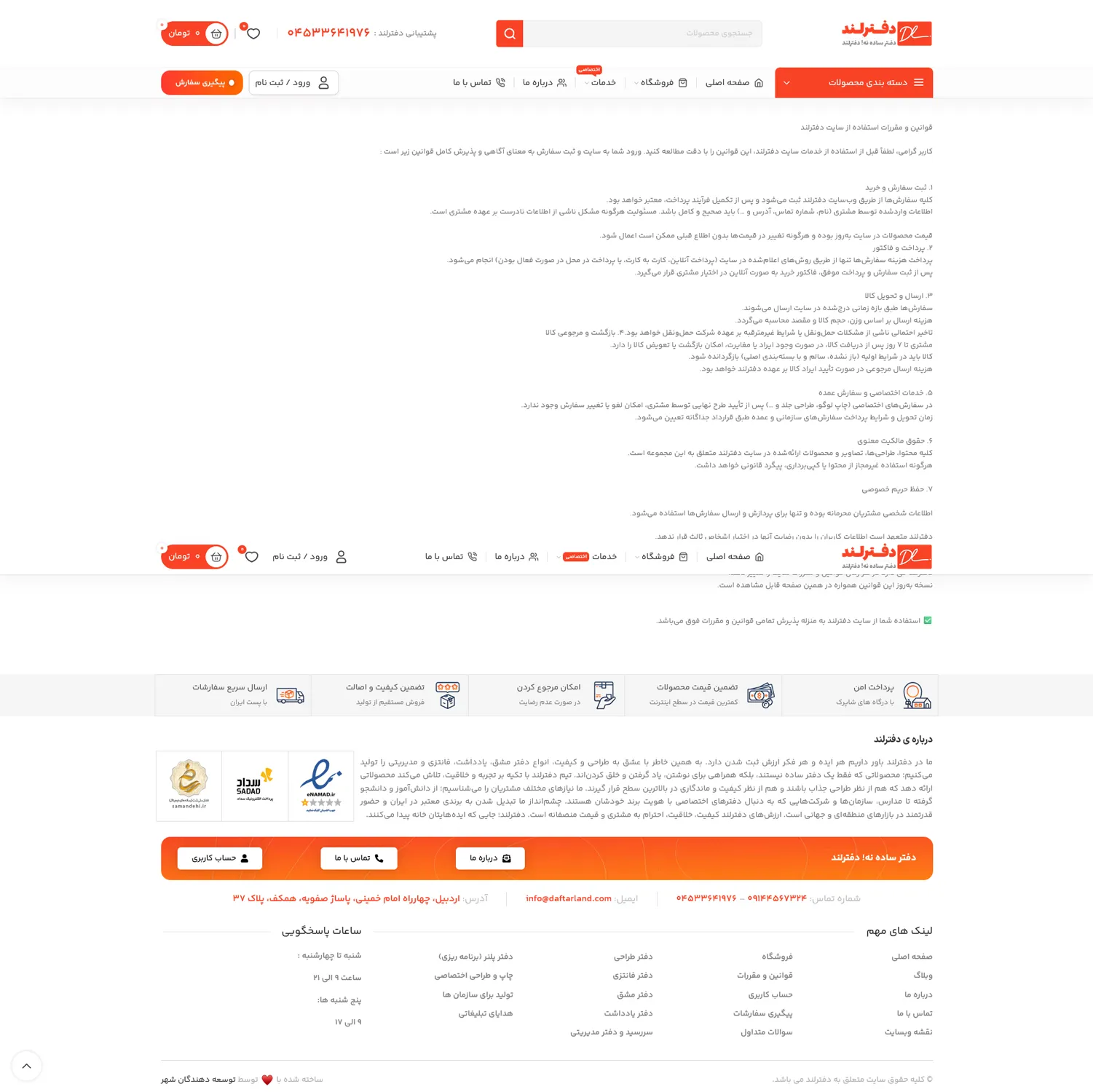 سایت دفترلند یک وبسایت فروش محصولات لوازم التحریر می باشد که توسط گروه توسعه دهندگان شهر طراحی شده است.