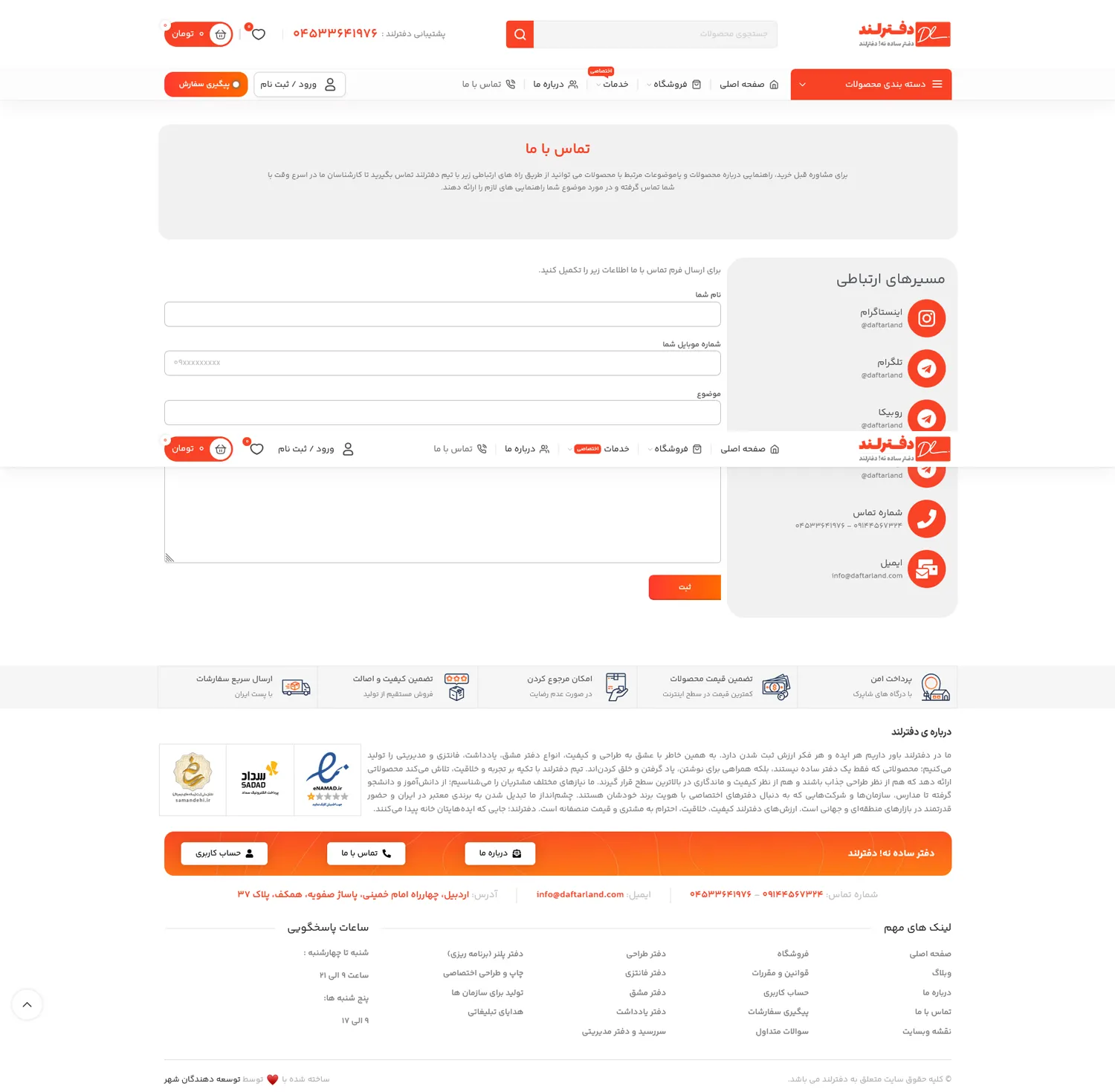 - صفحه تماس با ما فرم تماس و مشخصات تماس