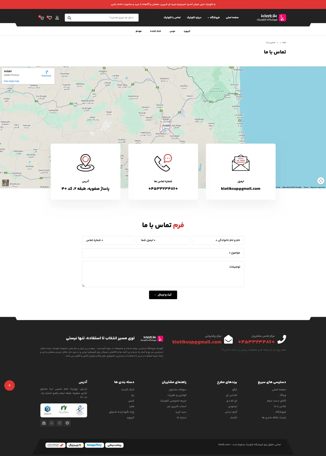 - صفحه تماس با ما فرم تماس و مشخصات تماس